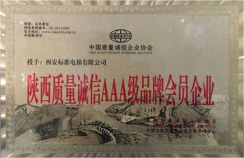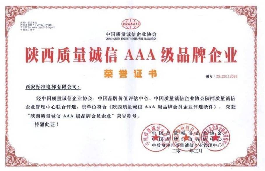 陜西質(zhì)量誠信AAA級品牌公員企業(yè)